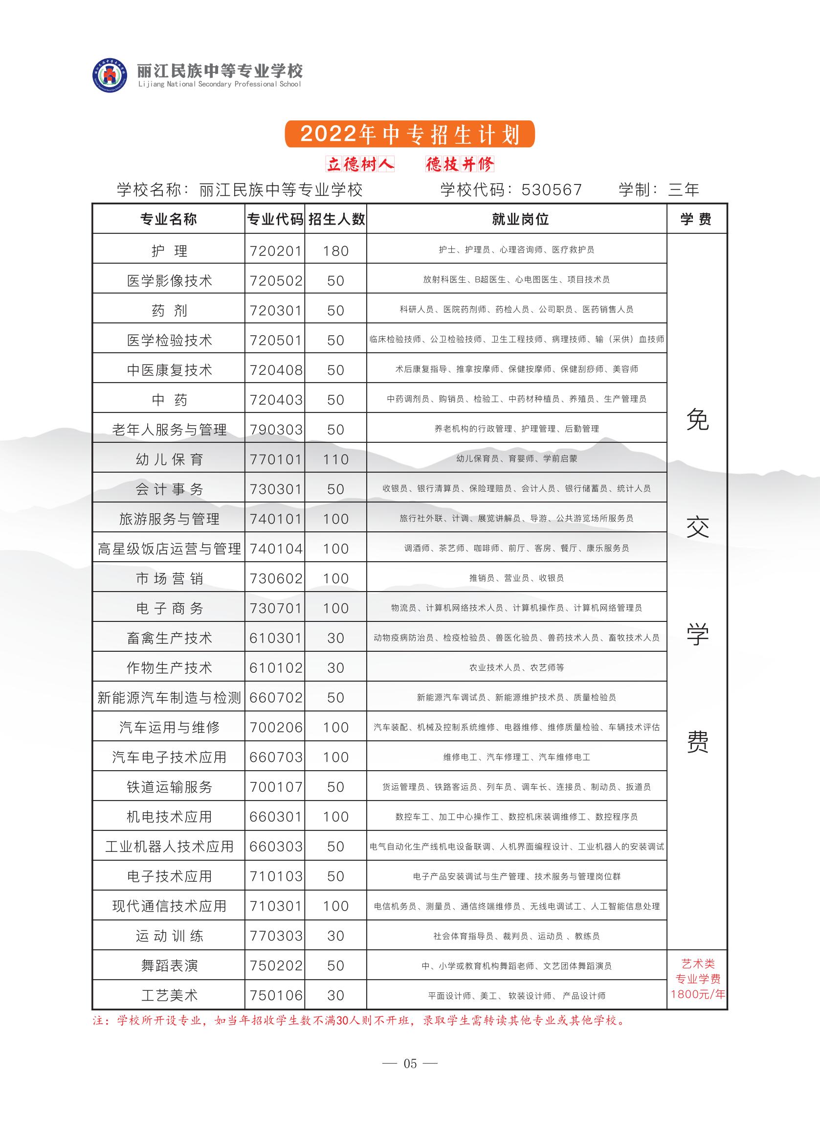 麗江民族中等專業學校2022年招生簡章